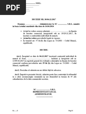 46/2003, nu constituie o exercitare a unui drept recunoscut de lege având ca urmare incidenţa dispoziţiilor art. Ucenicia la locul de muncă, actualizată. B)principiul controlului democratic al membrilor cooperatori, potrivit căruia cooperativele agricole sunt organizaţii democratice care sunt controlate de către membrii cooperatori care participă la stabilirea politicilor şi adoptarea deciziilor. O sa iti facem cadou un cod de descarcare gratuit pentru un text de lege la alegerea ta! Acesta este cel mai important act de care tin cont angajatorii si angajatii in raporturile de munca alaturi de alte acte normative ce armonizeaza prevederile sale.