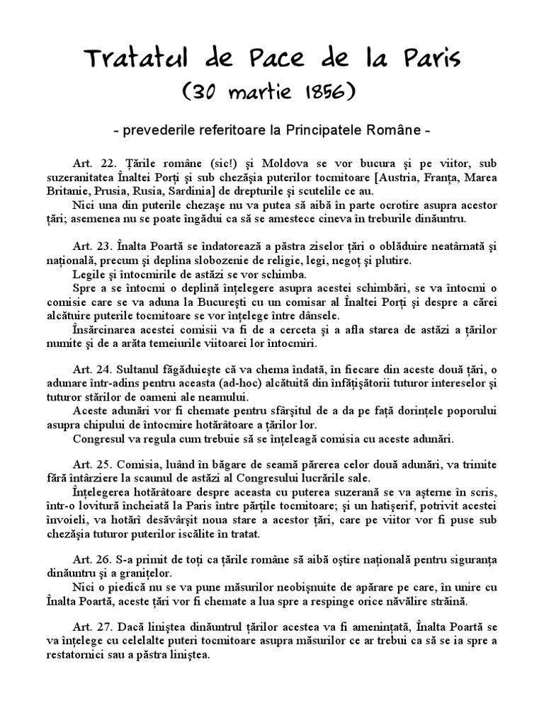vizitati articolul complet aici : https://www.academia.edu/33177090/CONGRESUL_DE_PACE_DE_LA_PARIS_DIN_1856_RAPORTURILE_FRANCO_RUSE_%C8%98I_PROBLEMA_ROM%C3%82NEASC%C4%82?auto=download (redirecționat de la congresul de pace de la paris din 1856). Prin congresul de la paris marile puteri au reuşit să stopeze expansiunea rusiei, să amâne destabilizarea echilibrului tratatul a fost semnat la 30 martie 1856 (18 martie 1856 pe stil vechi), principalele lui prevederi privind transformarea mării negre în teritoriu. Even though the venue is located quite far from the city center for parisian standards, on place de la porte maillot, which is literally the westernmost border of the.